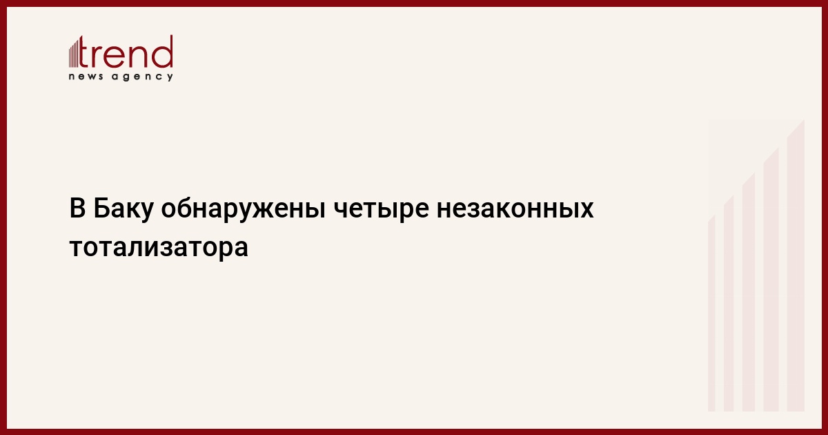 Во время проведения налогового контроля на территории Ясамальского, Хатаинского, Насиминского и Сабаильского районов столицы сотрудниками департамента налогового аудита при минналогов были выявлены четыре незаконных тотализатора, сообщили в понедельник в информационно-аналитическом отделе министерства.
