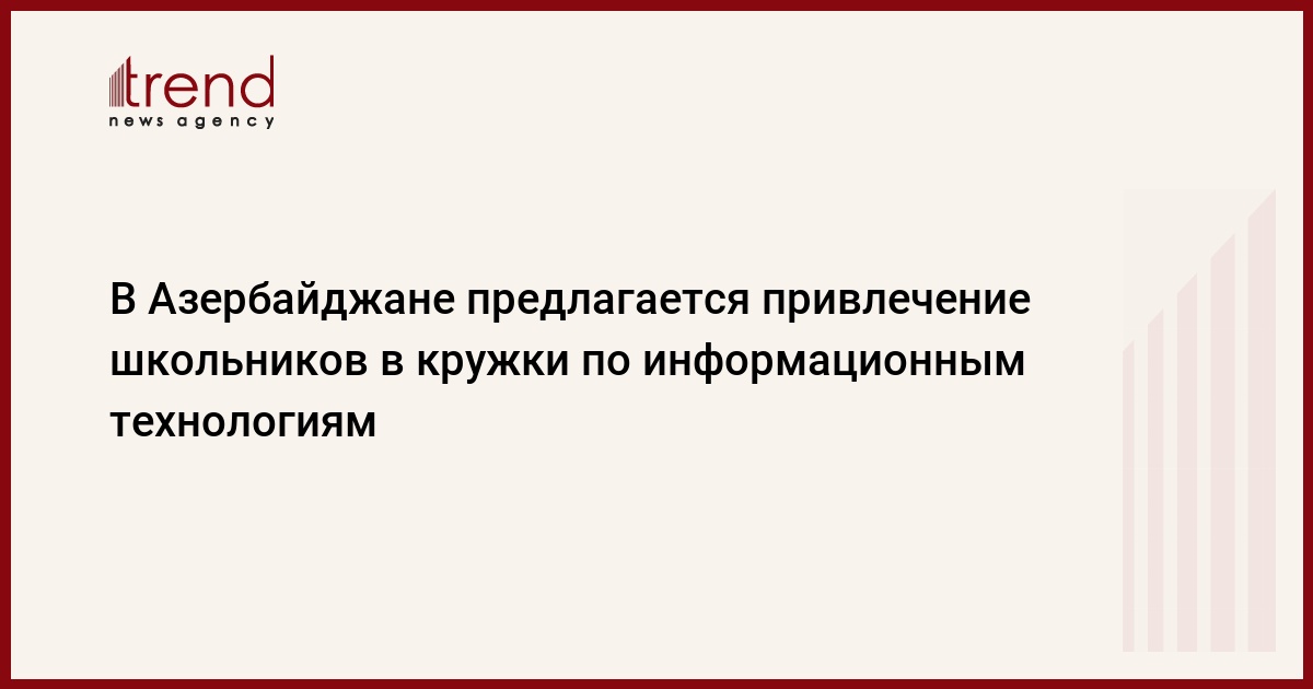 В Азербайджане в центрах технического творчества можно было бы открыть кружки по информационным технологиям, чтобы учащиеся средних школ не проводили свободное от уроков время в интернет-клубах, сказал в понедельник Trend завотделом воспитательных и внешкольных учреждений минобразования Агабаба Ибрагимов.