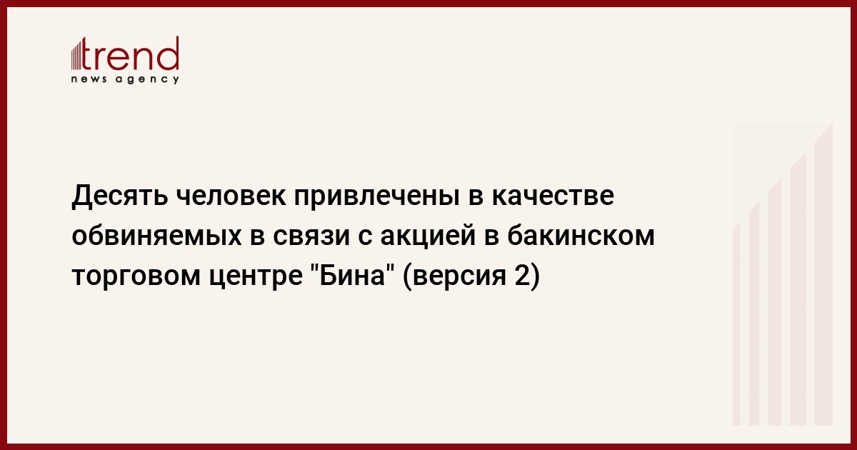 Десять человек привлечены в качестве обвиняемых по уголовному делу в связи с акцией в торговом центре "Бина", говорится в совместном заявлении Прокуратуры города Баку и Главного управления полиции, распространенном в понедельник.