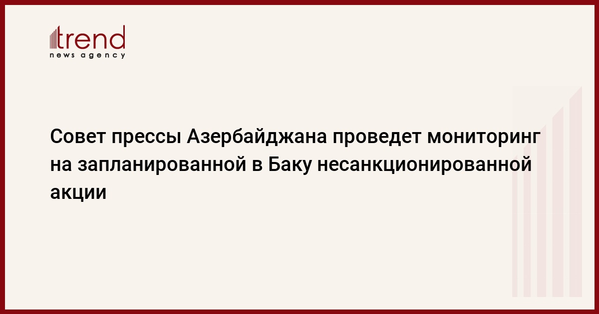 Совет прессы (СП) Азербайджана проведет мониторинг в ходе несанкционированной акции, запланированной сегодня на площади Фонтанов в Баку, сообщили Trend в субботу в Совете.