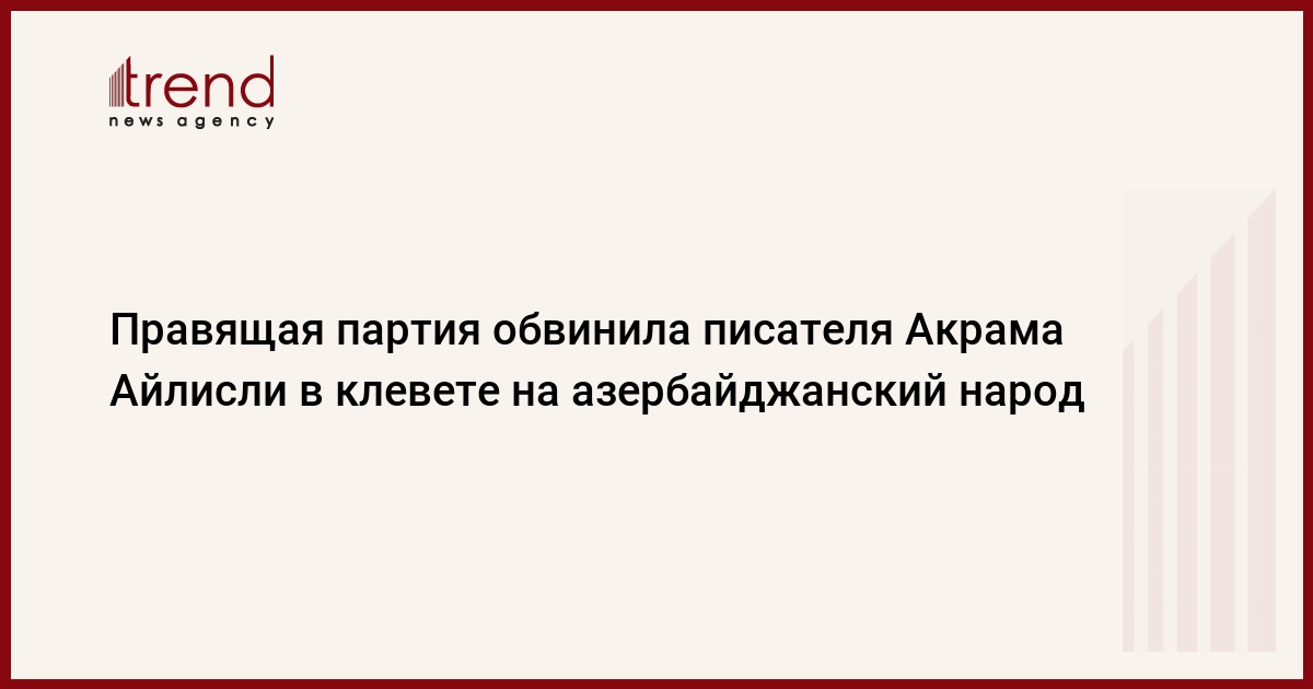 Тот, кто принижает азербайджанский народ, не имеет права называться народным писателем, сказал в четверг сайту правящей партии "Ени Азербайджан" (ПЕА) зампредседателя - исполнительный секретарь партии, депутат Милли Меджлиса (парламента) Али Ахмедов, комментируя произведение писателя Акрама Айлисли "Каменные сны".