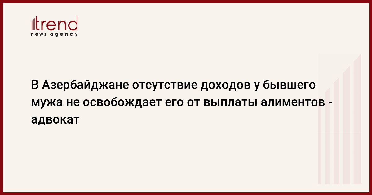 Отсутствие работы и прочих доходов у бывшего мужа не освобождает его от выплаты алиментов, сказал Trend во вторник юридический советник Бакинского юридического центра, адвокат Дуньямин Новрузов.