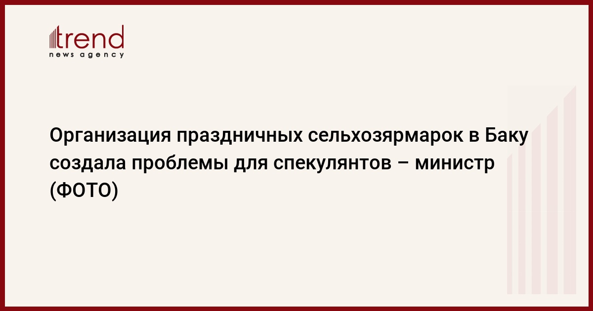 Во вторник во время бесед с покупателями на организованных в Баку ярмарках по продаже сельскохозяйственной продукции Абасов сказал, что отстранил от продажи на ярмарке двух спекулянтов, не соблюдавших правил торговли и допустивших искусственный рост цен.