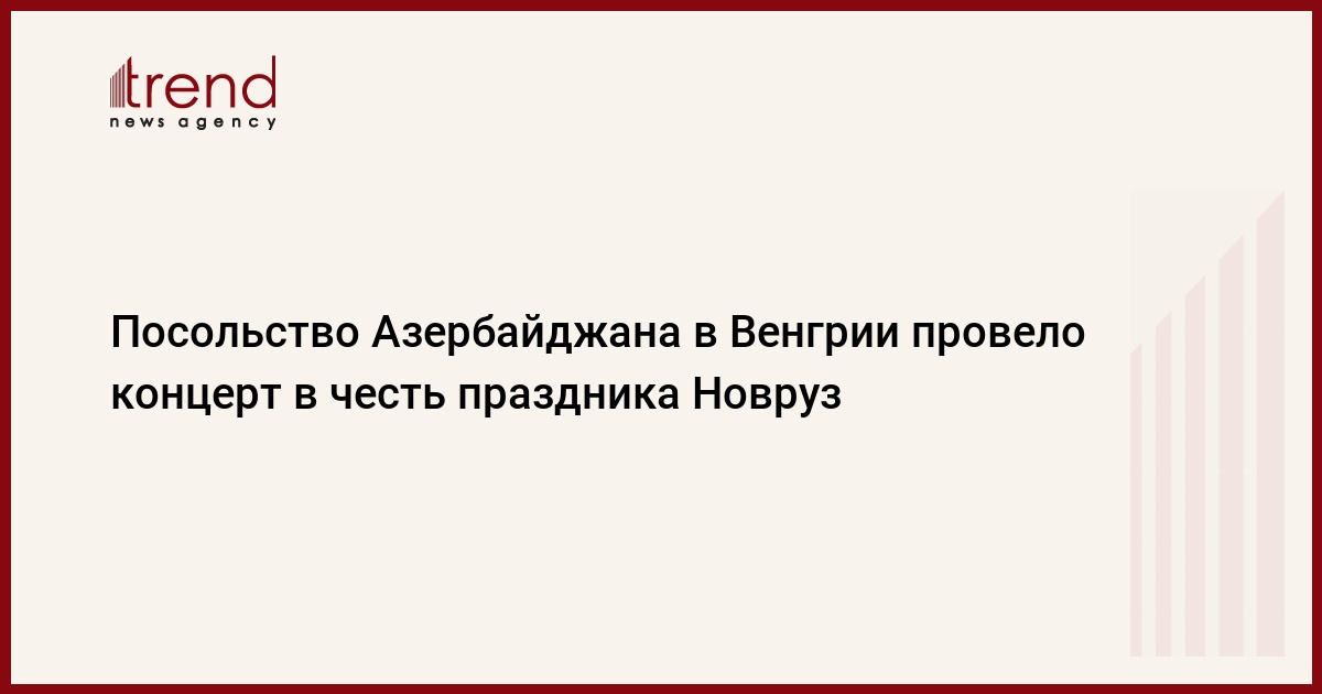 Посольство Азербайджана в Венгрии провело концерт в честь праздника Новруз, сообщили в посольстве Азербайджана в Венгрии.