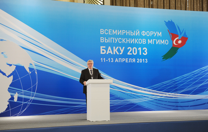За 70 лет из стен Московского государственного института международных отношений (МГИМО) вышло почти 40 тысяч человек. Об этом заявил ректор МГИМО, академик Российской Академии наук, выпускник факультета международных отношений 1972 года Анатолий Торкунов, выступая на I Всемирном форуме выпускников университета в Баку.