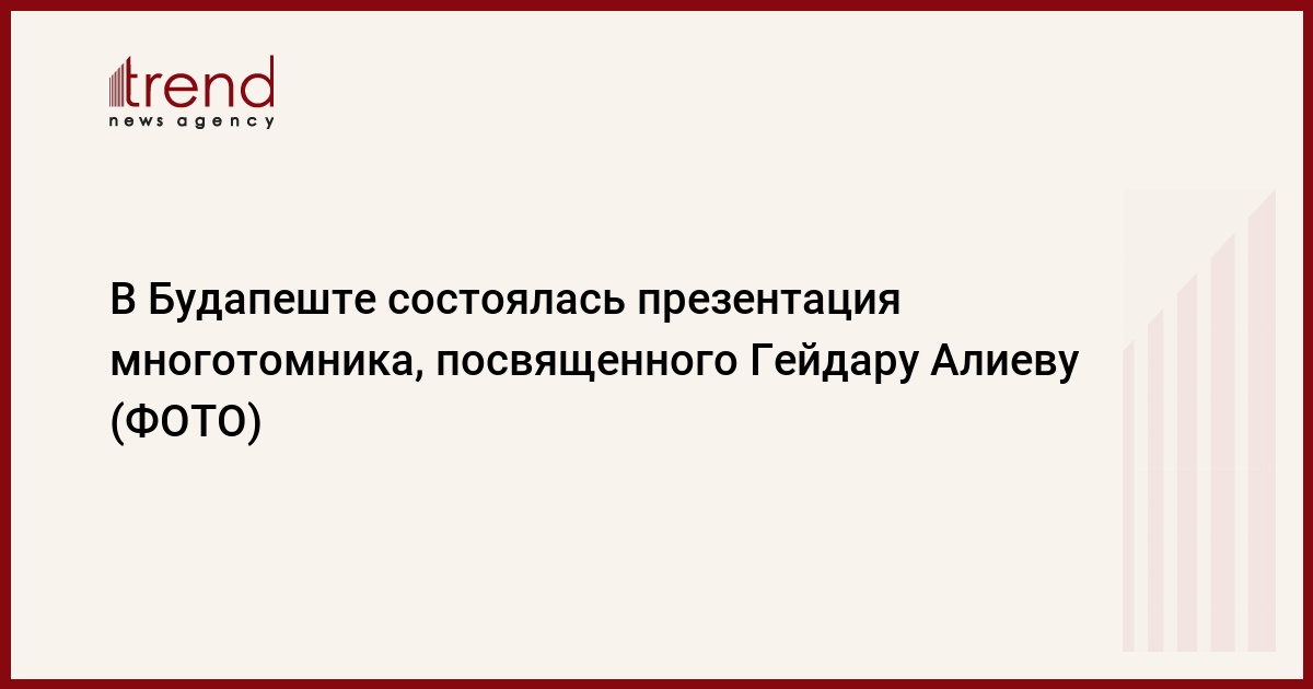 В рамках 20-й международной книжной выставки, проходящей в Будапеште, состоялась презентация многотомника "Heydər Əliyev: Müstəqilliyimiz əbədidir" ("Гейдар Алиев: Независимость вечна"), сообщили в понедельник Trend в посольстве Азербайджана в Венгрии.