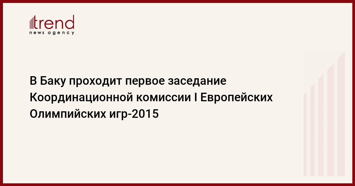 В Баку в понедельник проходит первое заседание Координационной комиссии I Европейских Олимпийских игр, которые пройдут в 2015 году в столице Азербайджана (First Coordination Comission (Co Com) European Games, Baku 2015).