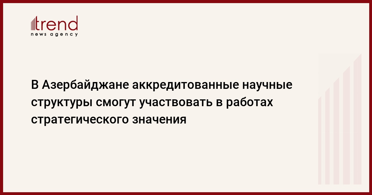 Все субъекты научной деятельности и их соответствующие структуры, прошедшие государственную аккредитацию в Азербайджане, смогут участвовать в работах стратегического значения, сообщили во вторник Trend в Милли Меджлисе (парламенте).