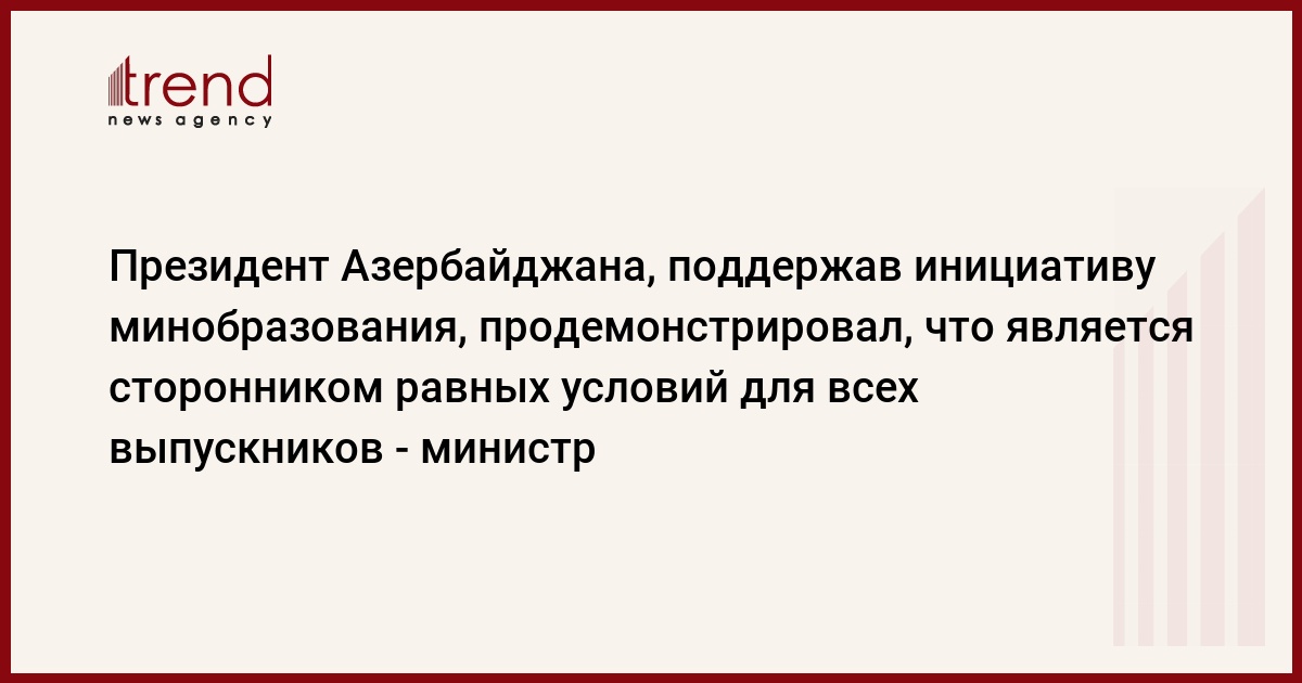 "Президент Азербайджана, поддержав инициативу минобразования, еще раз продемонстрировал, что является Президентом для каждого гражданина Азербайджана и сторонником равных условий для всех выпускников", - сказал министр образования Микаил Джаббаров.