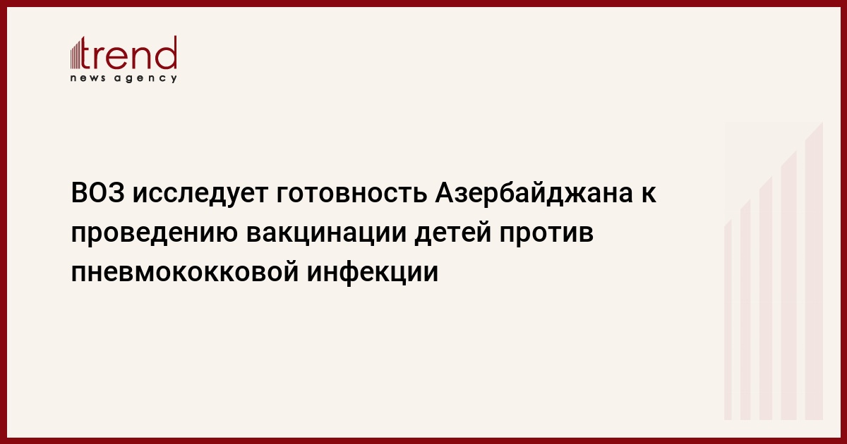 Всемирная организация здравоохранения (ВОЗ) исследует уровень готовности Азербайджана к проведению вакцинации детей против пневмококковой инфекции, сказала в четверг Trend замдиректора Республиканского центра гигиены и эпидемиологии министерства здравоохранения Азербайджана Афаг Алиева.
