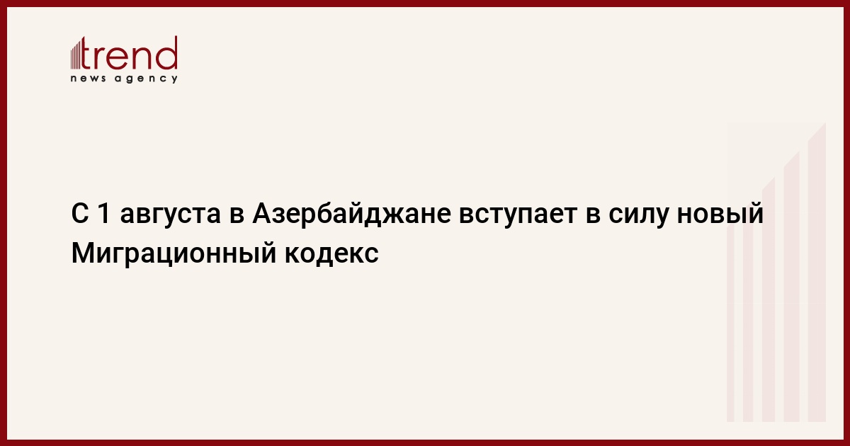 "Ранее предполагалось, что кодекс вступит в силу с первого июня, затем были предложения о переносе этой даты на первое сентября. Однако, так как все документы, необходимые для вступления в силу этого кодекса, уже подготовлены, то кодекс заработает с первого августа", - сказал Гусейнли.