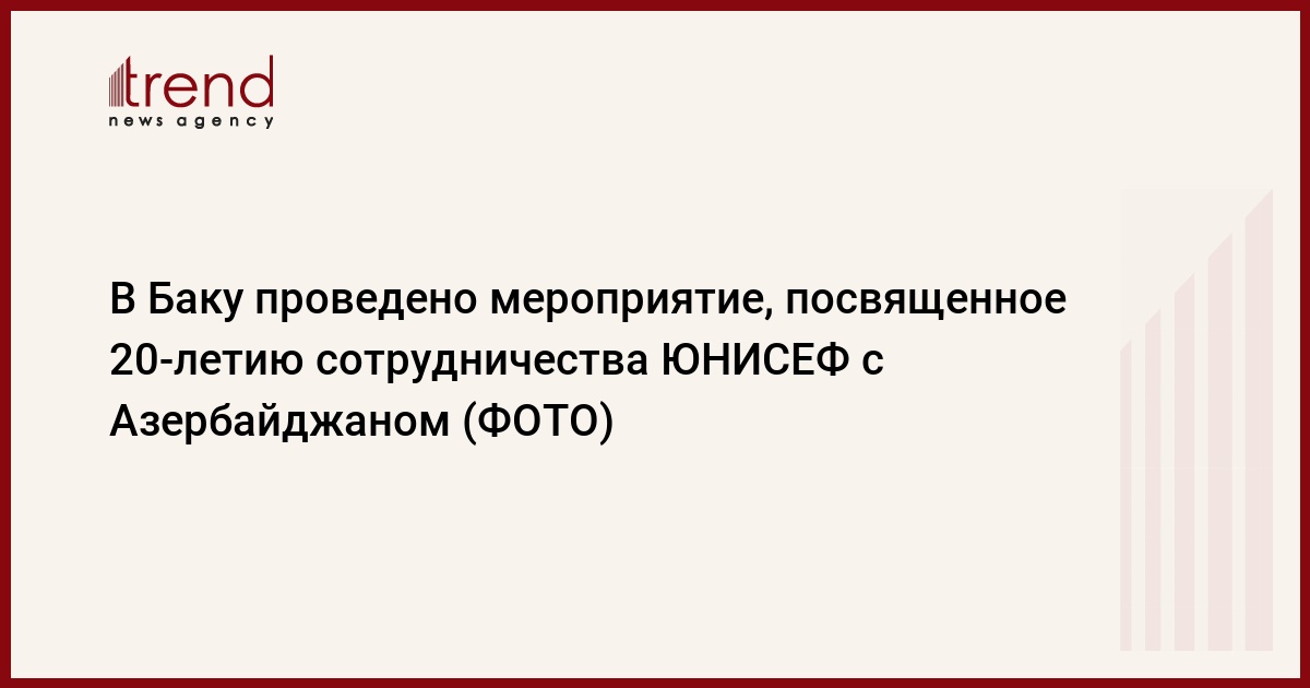 Государственный комитет по проблемам семьи, женщин и детей Азербайджана (ГКПСЖД) совместно с Детским Фондом (ЮНИСЕФ) при ООН провел мероприятие под девизом "Объединимся ради детей", посвященный 20-летию сотрудничества ЮНИСЕФ с Азербайджаном.