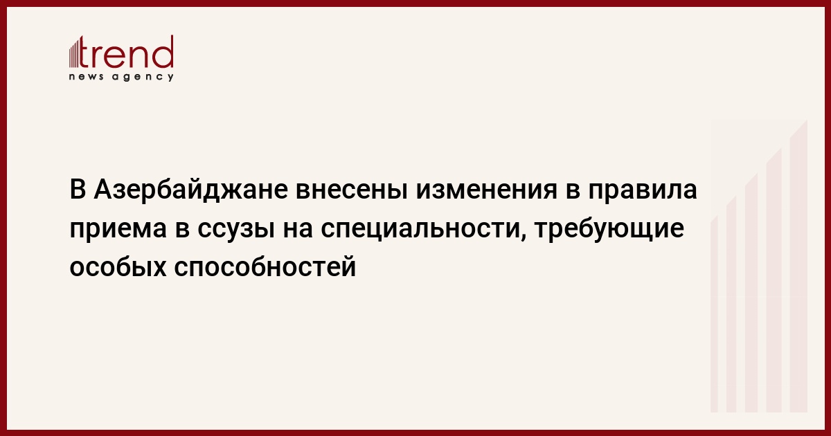В Азербайджане были внесены изменения в правила приема в средне-специальные учебных заведениях на основе девятилетнего образования на специальности, требующие особых способностей, сообщил в пятницу журналистам руководитель пресс-службы Государственной комиссии по приему студентов (ГКПС) Азербайджана Эльнур Нагизаде.