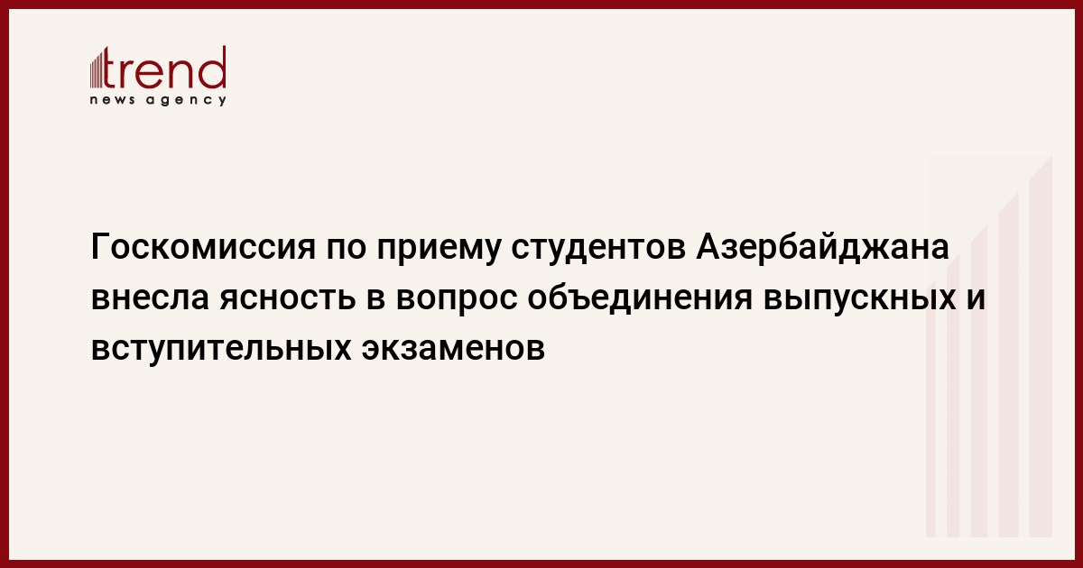 Председатель ГКПС отметила, что неправильно обсуждать вопрос объединения выпускных и вступительных экзаменов. "Делаются шаги для того, чтобы поднять уровень образования в средних школах. Поэтапно мы можем дойти до такого уровня, что уже при поступлении в вузы на определенные специальности необходимо будет предоставить лишь аттестат. Возможно, это произойдет минимум через пять лет. Но будут также такие специальности и вузы, поступить в которые можно будет только лишь путем сдачи экзаменов", - сказала глава ГКПС.