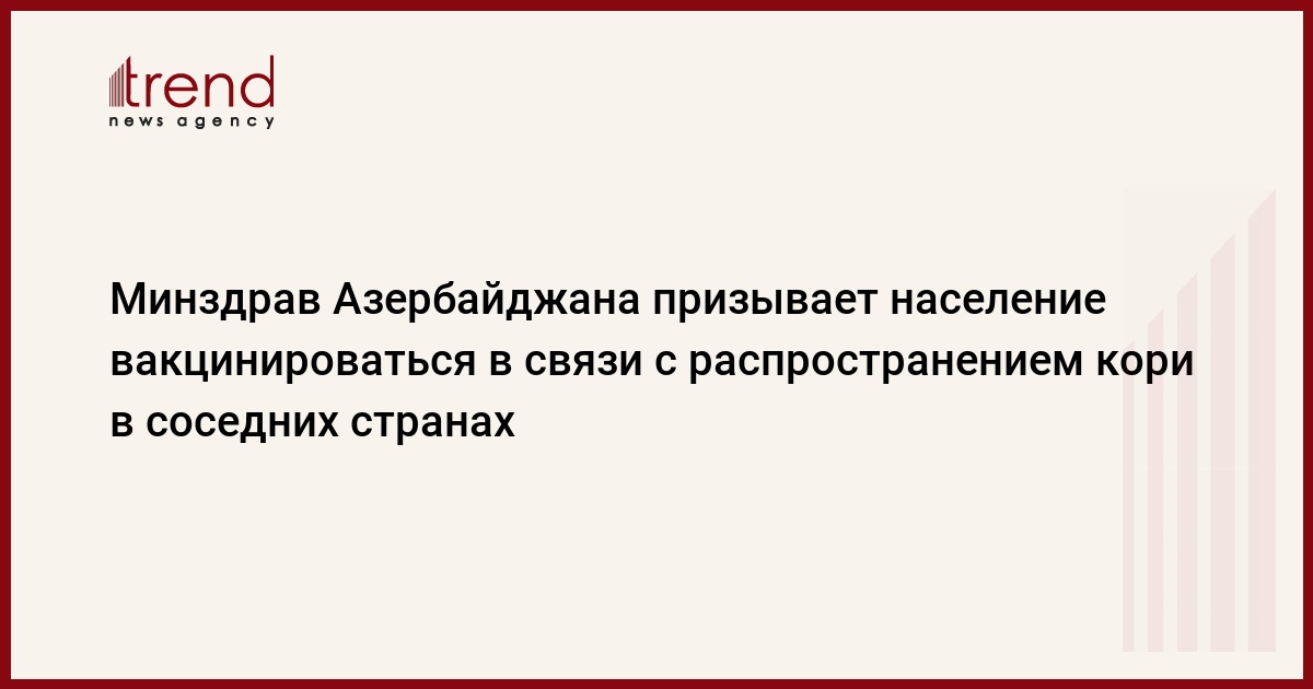 Несмотря на то, что в соседних с Азербайджаном Турции, Грузии и России уменьшилось число случаев заражения корью, угроза распространения этой болезни полностью не исчезла. Поэтому есть вероятность проникновения этого заболевания в Азербайджан, сообщила Trend во вторник заместитель директора Центра гигиены и эпидемиологии министерства здравоохранения Азербайджана Афаг Алиева.