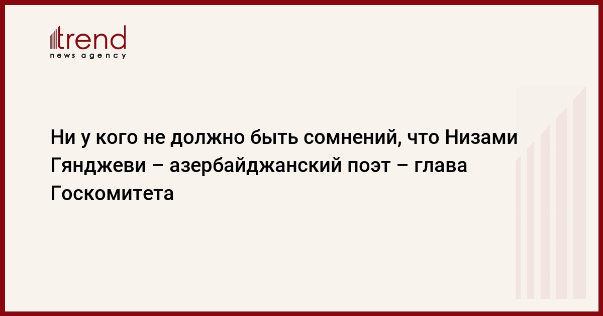 "Низами Гянджеви вырос, жил и был похоронен в азербайджанской земле, значит, он сын этой земли и этого народа, и у азербайджанцев не может более важного дела, чем продвижение наследия Низами. И ни у кого не должно быть сомнения в том, что он азербайджанский поэт", - подчеркнул Ибрагимов.