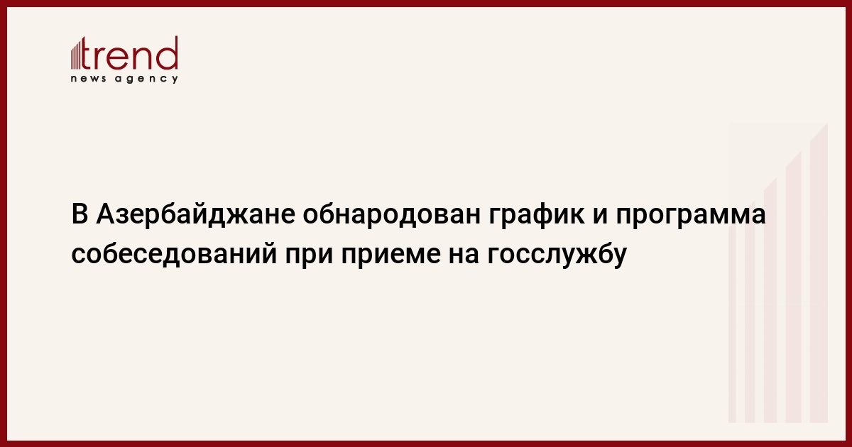 Комиссия по вопросам государственной службы при Президенте Азербайджана обнародовала график проведения собеседований с кандидатами, принимающими участие в конкурсе по приему на госслужбу.