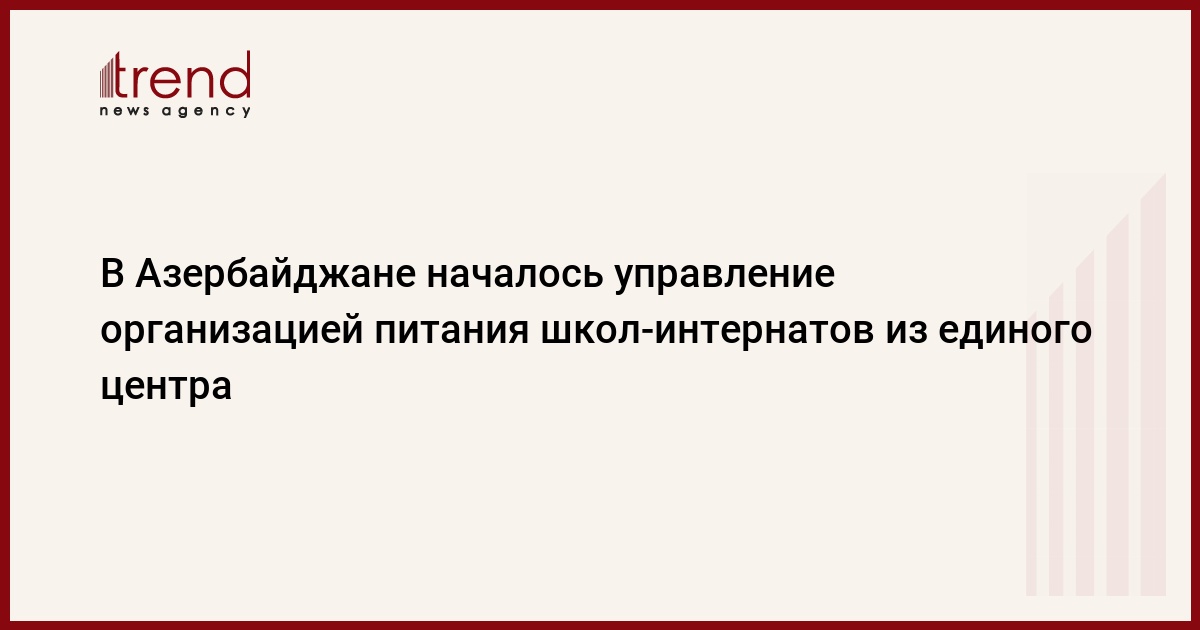 В Азербайджане начался процесс управления организацией питания школ-интернатов, лицеев и гимназий при министерстве образования из единого центра, сообщили в субботу Trend в министерстве.