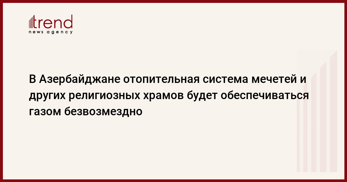 Согласно поручению Президента Азербайджана Ильхама Алиева отопительная система всех действующих на территории Азербайджана мечетей и храмов других конфессий будет обеспечена природным газом безвозмездно.