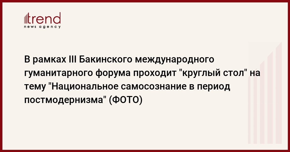 В рамках III Бакинского международного гуманитарного форума в пятницу проходит "круглый стол" на тему "Национальное самосознание в период постмодернизма".
