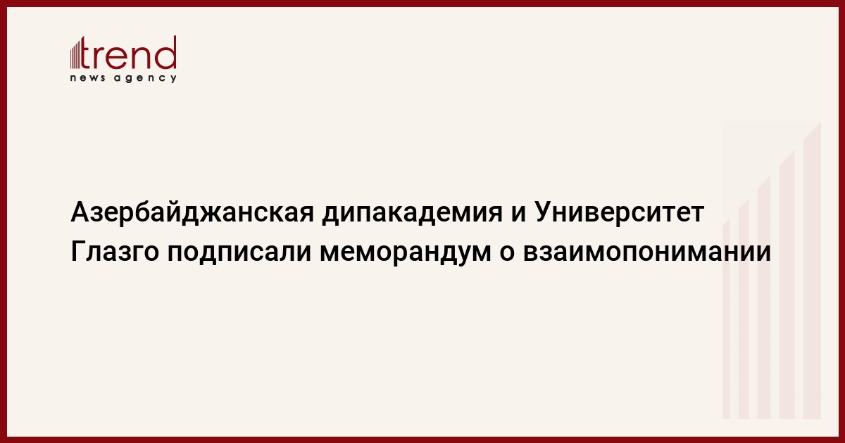 Азербайджанская дипломатическая академия (АДА) и Университет Глазго Великобритании подписали меморандум о взаимопонимании, говорится в сообщении департамента по коммуникациям АДА, распространенном в понедельник.