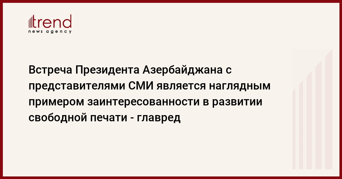 Встреча Президента Ильхама Алиева с представителями печати является наглядным примером заинтересованности в существовании и развитии в стране свободной печати. Об этом в среду сказал Trend главный редактор газеты "Bakı-Xəbər" Айдын Гулиев.