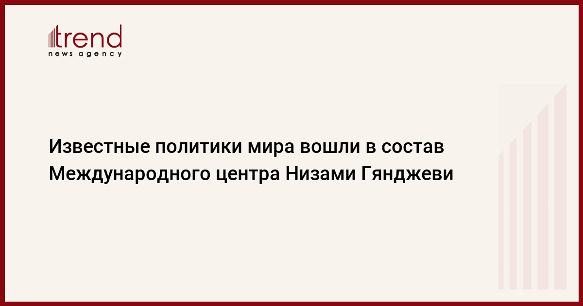 Согласно сообщению, в работе Правления Международного центра Низами Гянджеви принимают участие экс-президент Латвии Вайра Вике-Фрейберга, экс-президент Финляндии Тарья Халонен, директор Александрийской библиотеки Исмаил Серагелдин, экс-президент Болгарии Петар Стоянов, экс-президент Кыргызстана Роза Отунбаева, экс-президент Сербии Борис Тадич, экс-президент Португалии Хорхе Сампайо.