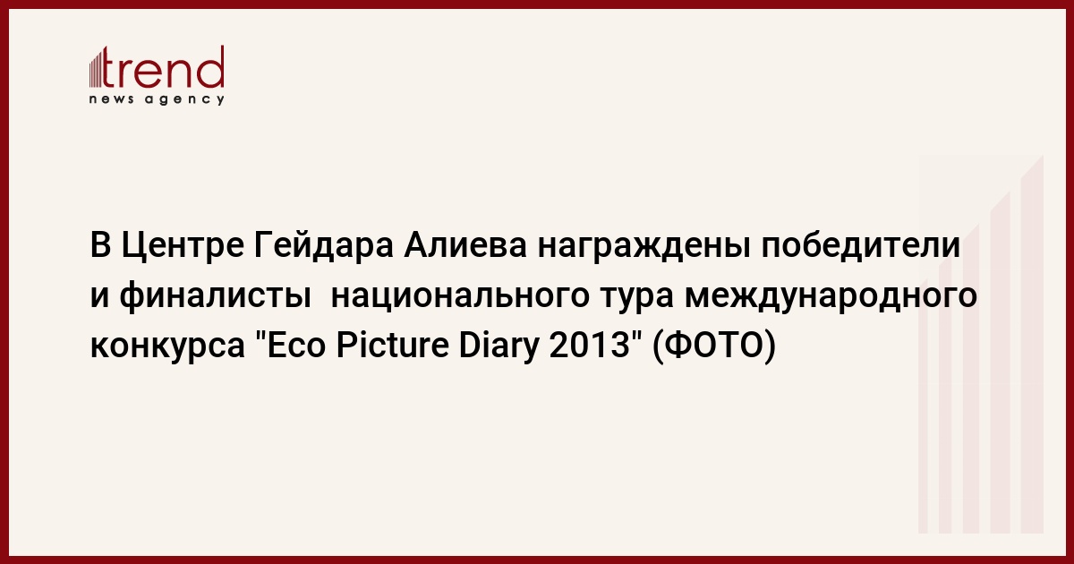 Во вторник в Центре Гейдара Алиева состоялась церемония награждения победителей и финалистов национального тура международного конкурса "Eco Picture Diary 2013" ("Дневник экорисунков 2013"), впервые проведенного среди школьников в Азербайджане.