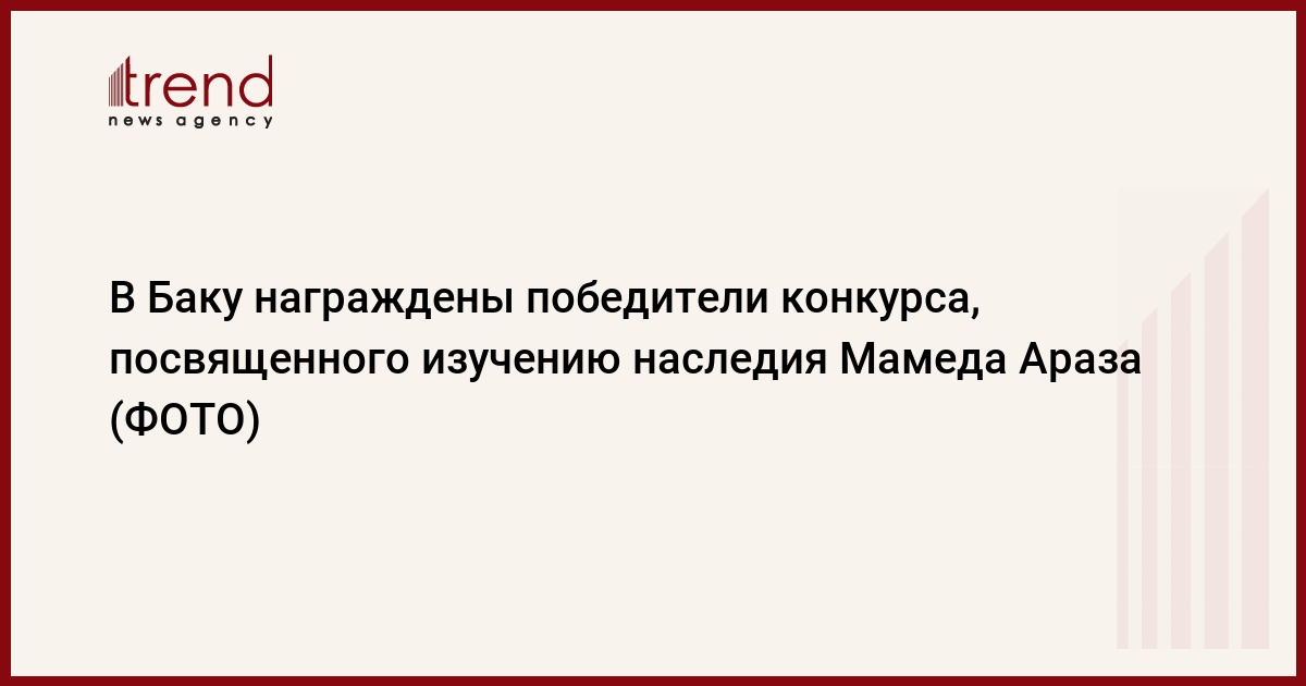 В пятницу в Баку состоялась церемония награждения победителей конкурса художественно-публицистических работ, объявленного газетой "Kaspi" в преддверии 80-летнего юбилея народного поэта Мамеда Араза и направленного на изучение наследия выдающегося поэта.