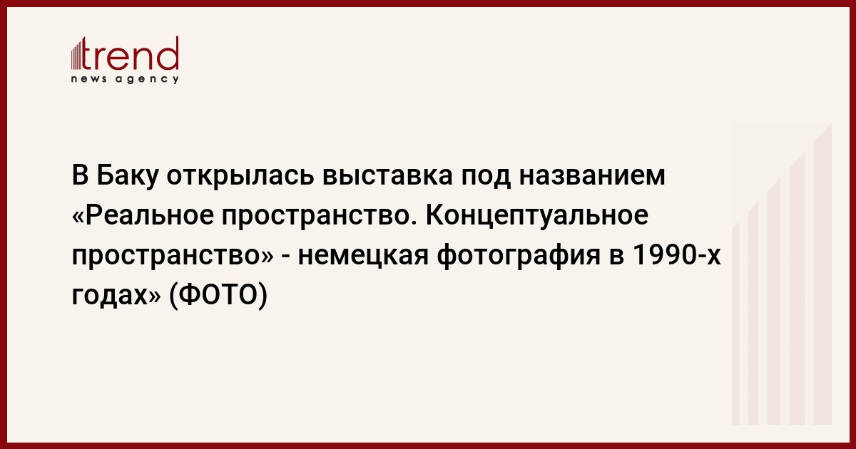 24 января при совместной организационной поддержке Музея современного искусства, Института внешних связей Германии (İFA) и посольства Германии в Азербайджане открылась фотовыставка под названием "Реальное пространство. Концептуальное пространство" - немецкая фотография в 1990-х годах".