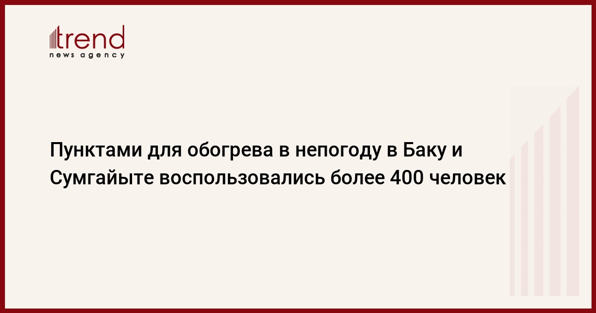 Согласно информации, в Баку в Хатаинском районе пунктами обогрева воспользовались 71, Наримановском - 130, Насиминском - 75, Низаминском - 50, Ясамальском районе - 34, в Сумгайыте - 60 человек.
