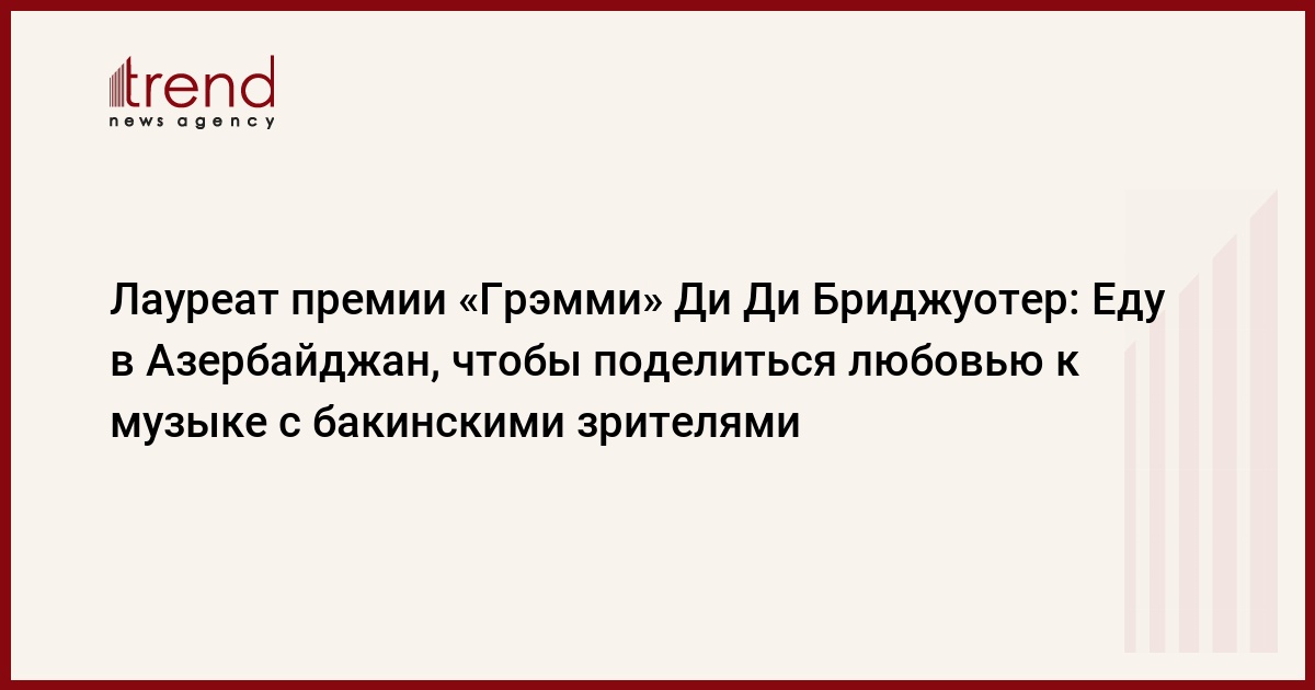 Интервью агентства Trend с американской джазовой певицей, лауреатом трех премий "Грэмми" Ди Ди Бриджуотер
