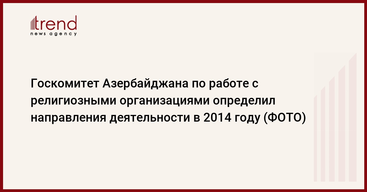 Государственный комитет Азербайджана по работе с религиозными организациями определил направления деятельности в 2014 году. Об этом сказал в пятницу председатель госкомитета Эльшад Искендеров на мероприятии, посвященном итогам деятельности в прошлом году.