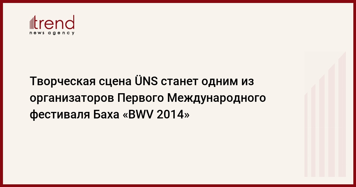 Творческая сцена ÜNS станет одним из организаторов Первого Международного фестиваля И.С. Баха "BWV 2014", который состоится по инициативе Храма Святого Людовика Французского в Москве, Международного фестиваля искусств "Арт-ноябрь" и при поддержке "AR Production".