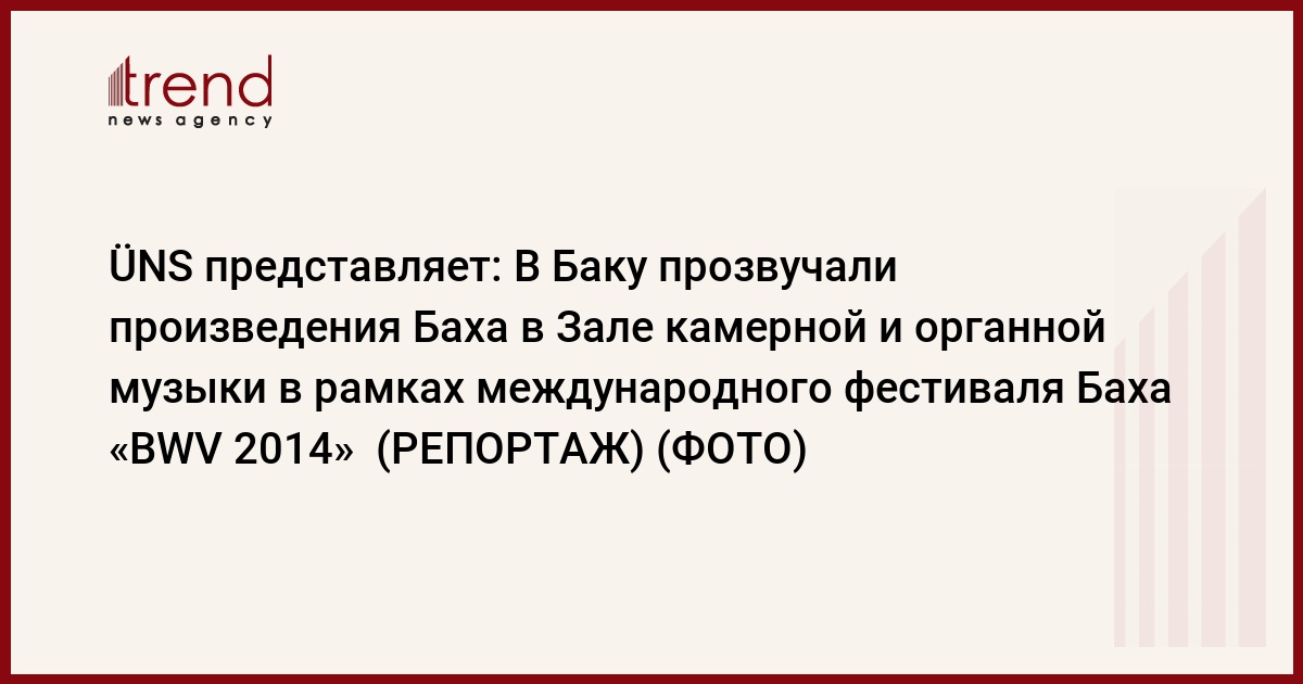 Концерт был организован Творческой сценой ÜNS в рамках Первого Международного фестиваля И.С. Баха "BWV 2014", который проводится в Баку, Москве и Риге по инициативе Храма Святого Людовика Французского в Москве, Международного фестиваля искусств "Арт-ноябрь" при поддержке "AR Production".