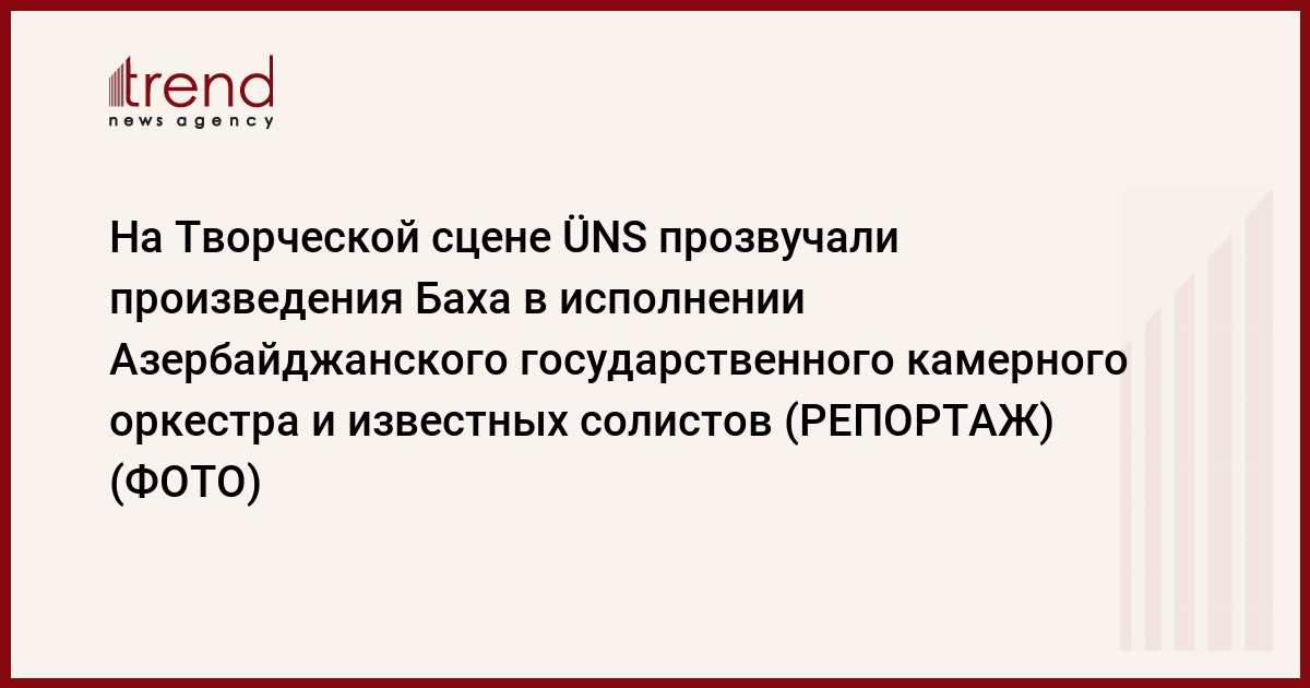 Этот концерт стал очередным подарком поклонникам музыки Баха от Творческой сцены ÜNS. Ранее, 16 марта, Творческая сцена ÜNS организовала аналогичный концерт, который прошел в Концертном зале Большой гильдии в Риге в исполнении Лиепайского камерного оркестра под управлением заслуженного деятеля искусств Азербайджана, дирижера Ялчина Адигезалова.