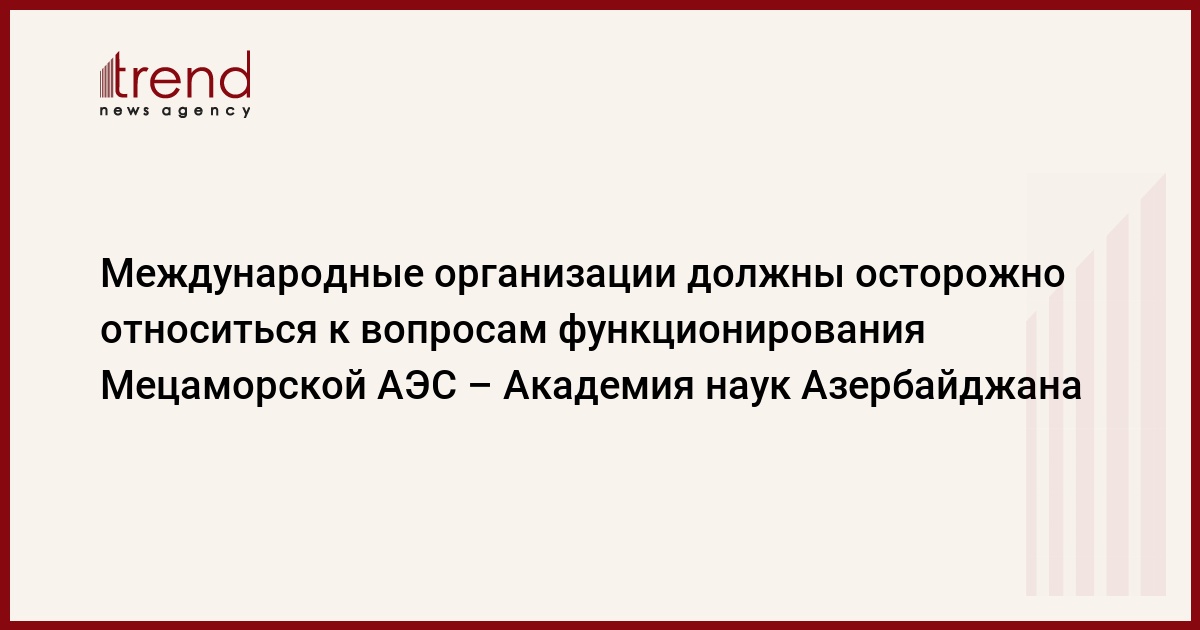 Международные организации должны осторожно относиться к вопросам функционирования Мецаморской АЭС. Об этом в четверг сказал Trend директор Института радиационных проблем Национальной академии наук Азербайджана (НАНА), координатор по ядерным наукам МАГАТЭ Адыль Гарибов, комментируя вопрос о продлении срока эксплуатации названной АЭС.