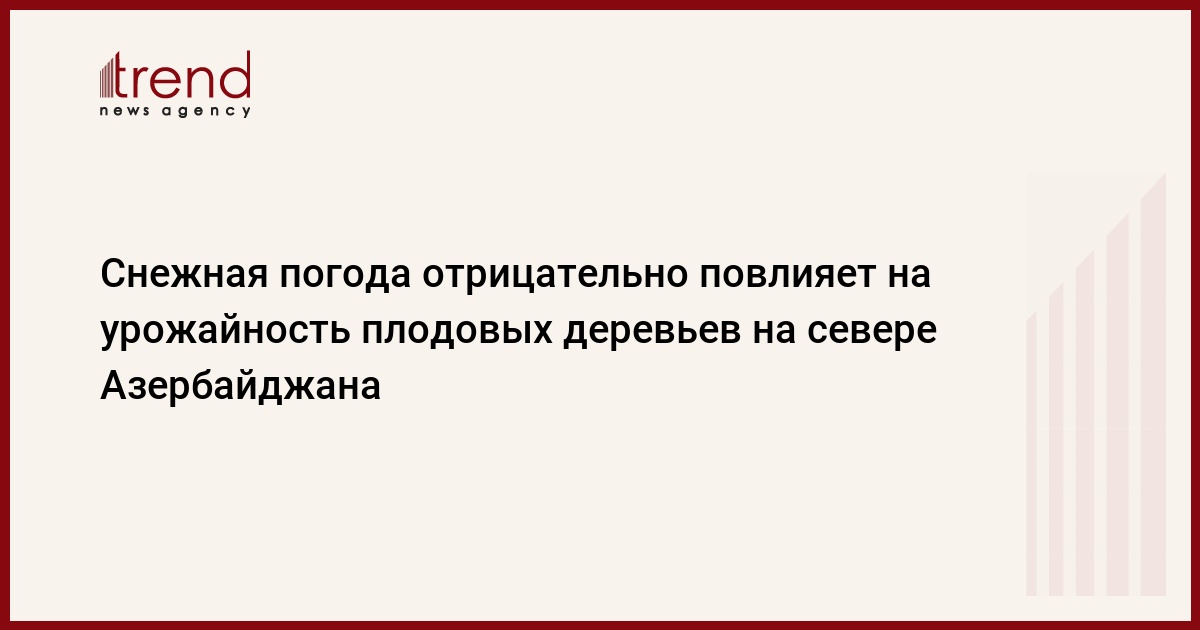 Снежная погода, наблюдавшаяся на территории Азербайджана 30 марта, отрицательно повлияет на урожайность плодовых деревьев в северном регионе страны. Об этом сказал Trend в понедельник главный агроном Центрального ботанического сада Национальной академии наук Азербайджана (НАНА) Асиф Мехралиев.