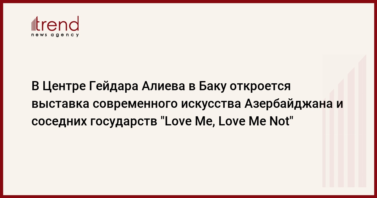 В Центре Гейдара Алиева в Баку откроется выставка современного искусства Азербайджана и соседних государств "Love Me, Love Me Not". Выставка откроется четвертого апреля и продлится до 25 мая 2014 года.