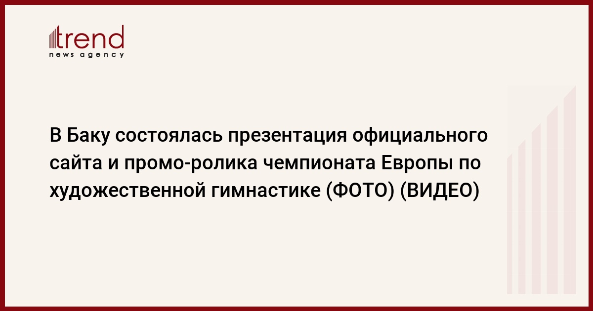 В Баку в субботу состоялась презентация официального сайта чемпионата Европы по художественной гимнастике, который пройдет 13-15 июня в столице Азербайджана (http://baku2014.agf.az/application/), и промо-ролика, который будет демонстрироваться по телевизионным каналам.
