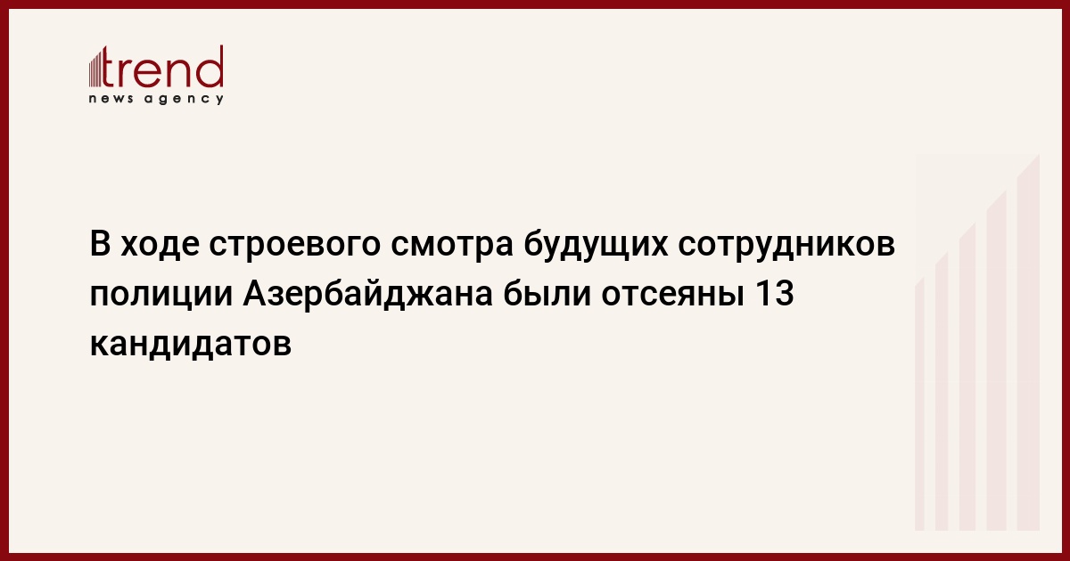 Министр внутренних дел генерал-полковник Рамиль Усубов во время строевого смотра по приему на службу в рядовой и младший начальствующийсостав органов внутренних дел в Полку быстрого реагирования вывел из строя 13 человек, не отвечающих установленным требованиям, говорится в сообщении пресс-службы МВД.