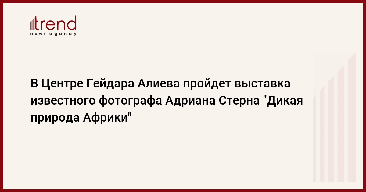 В среду в Центре Гейдара Алиева откроется выставка известного фотографа Адриана Стерна под названием "Дикая природа Африки".