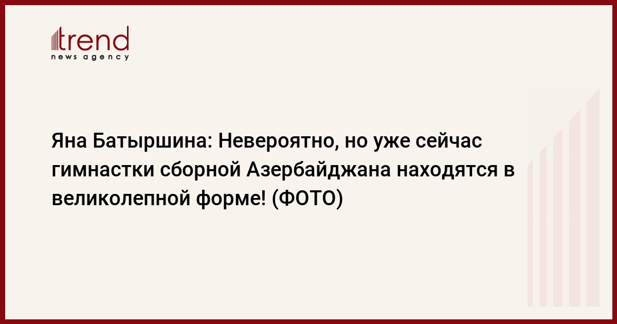 Интервью Trend с вице-чемпионкой Олимпийских игр в Атланте-96, 7-кратной чемпионкой мира и 5-кратной чемпионкой Европы россиянкой Яной Батыршиной, которая стала почетным гостем контрольной тренировки членов сборной Азербайджана по художественной гимнастике в преддверии Евро-2014 в Баку.