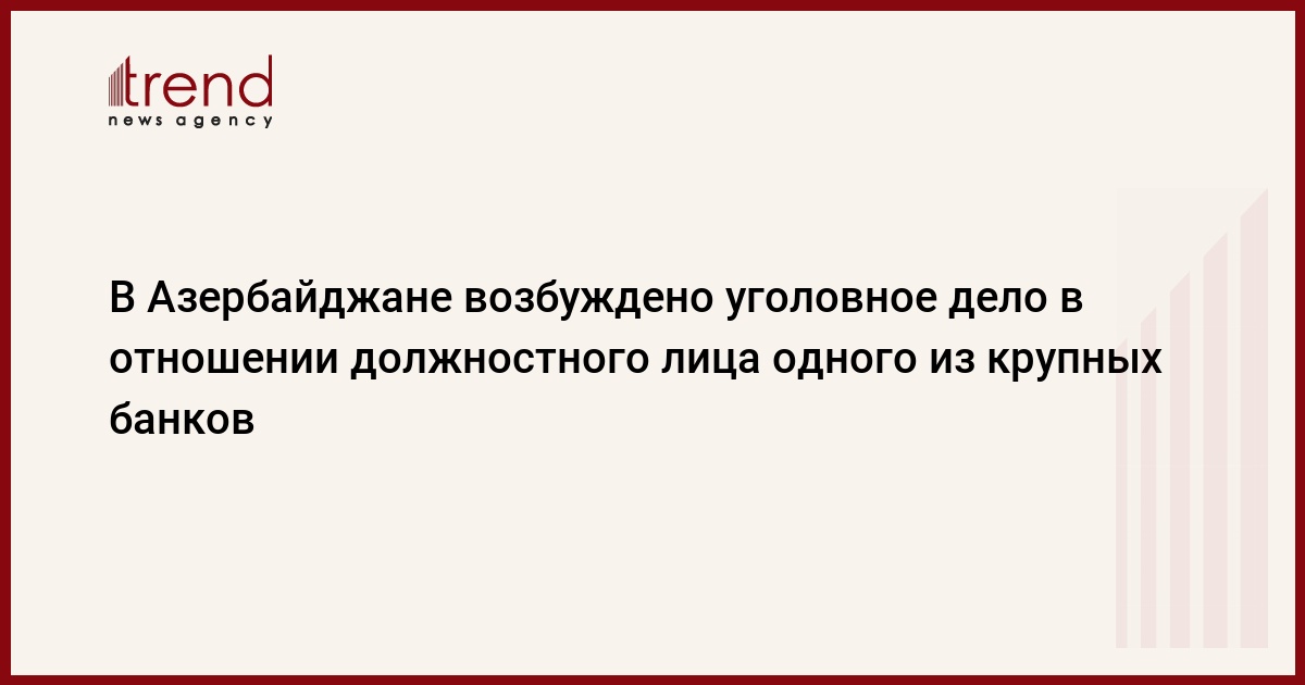 В отношении должностного лица одного из крупных банков Азербайджана возбуждено уголовное дело, сообщили в среду Trend в пресс-службе Генпрокуратуры.