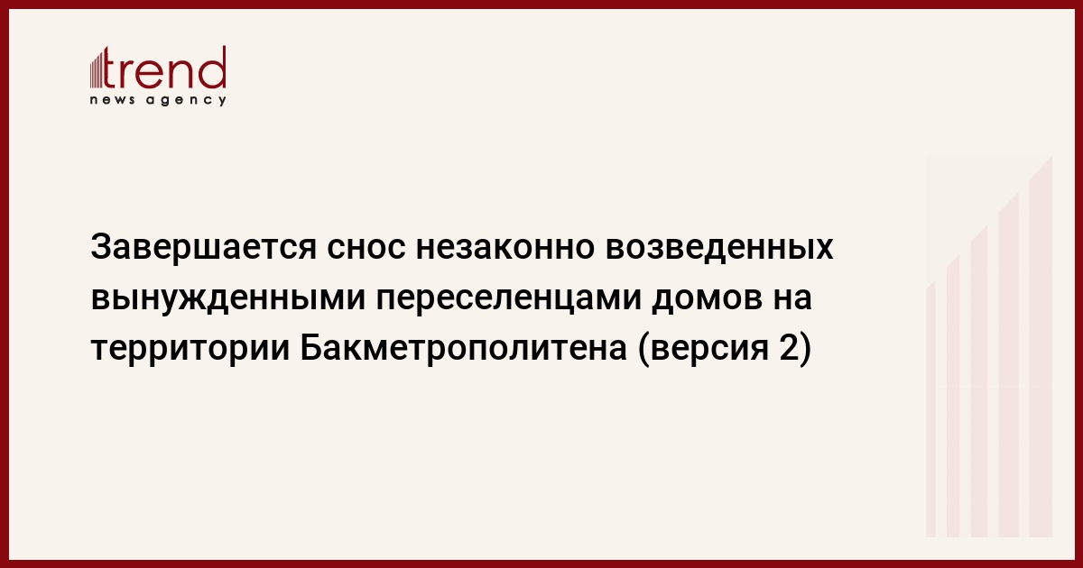 Отметим, что двумя днями ранее руководство ЗАО "Бакметрополитен" сделало последнее предупреждение жителям домов, которые подлежат сносу. В ходе инвентаризации было выявлено, что на этой территории имеются 217 участков, принадлежащих 83 вынужденным переселенцам. Местным жителям были выплачены компенсации, и они были переселены. Вынужденным переселенцам также были выделены квартиры, однако шесть семей отказывались переезжать.