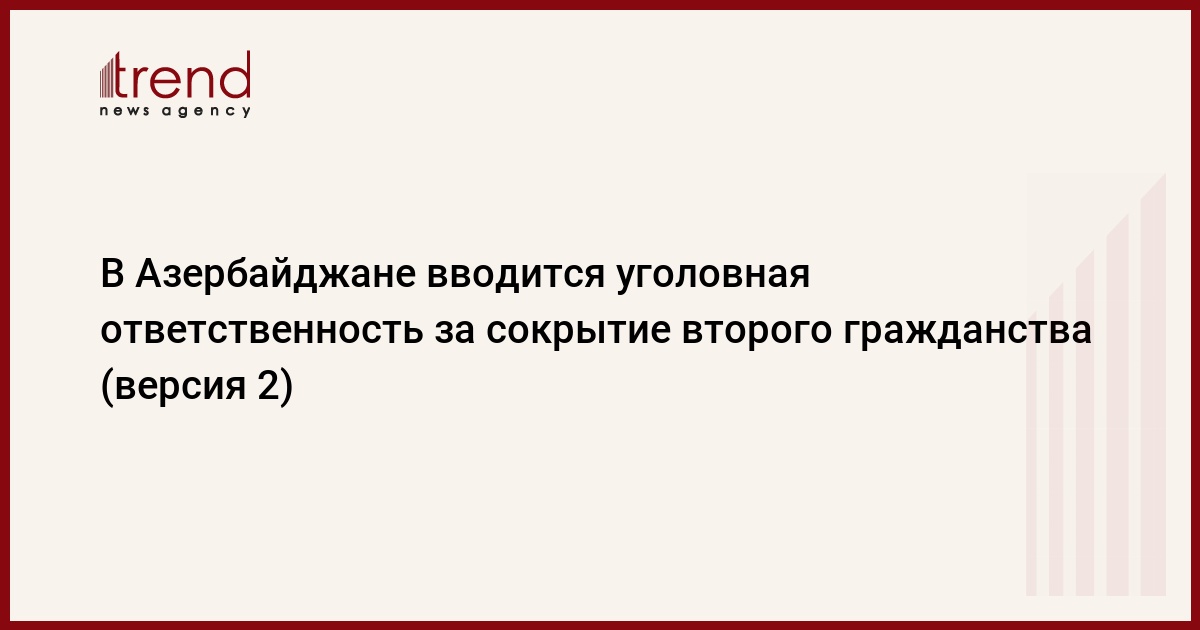 Милли Меджлис (парламент) Азербайджана в пятницу одобрил изменения в закон "О гражданстве Азербайджанской Республики", согласно которым вводится уголовная ответственность за сокрытие второго гражданства.