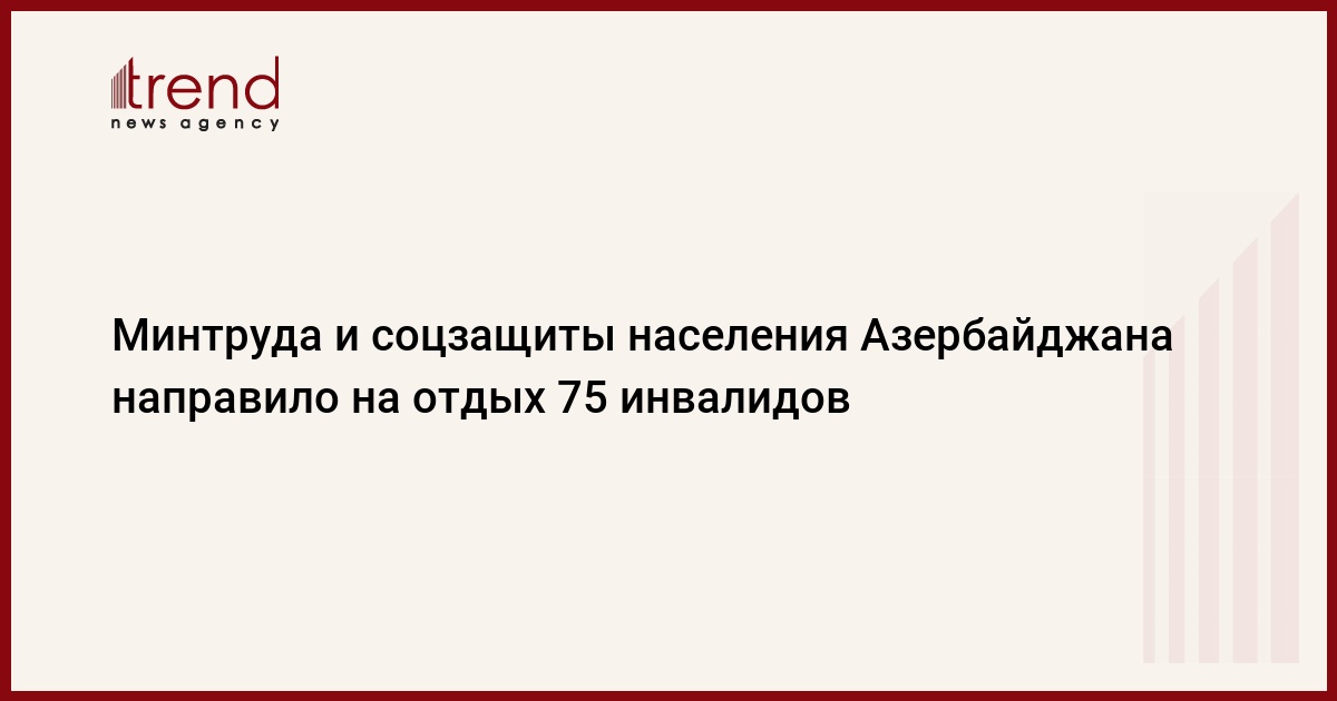 В понедельник министерством труда и социальной защиты населения Азербайджана 75 человек были направлены в центр отдыха, расположенный в Набрани в Хачмазском районе. Данные мероприятия нацелены на организацию отдыха инвалидов и детей с ограниченными возможностями в соответствии с программой по их реабилитации и социальной защите, сообщили в понедельник Trend в министерстве.