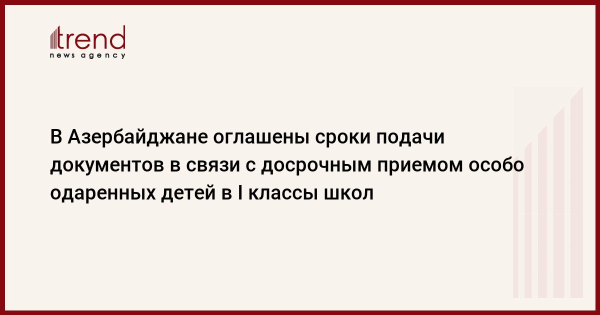 В Азербайджане стали известны сроки подачи документов особо одаренных детей для досрочного обучения в первых классах школ на следующий учебный год. В соответствии с "Правилами приема и перевода детей (учащихся) в общеобразовательные школы", в первые классы средних школ в Азербайджане могут быть приняты особо одаренные дети, которым в период с 16 сентября по 31 декабря текущего года исполнится шесть лет. Об этом сообщил в понедельник на пресс-конференции заведующий сектором по работе с НПО и СМИ министерства образования страны Джесарет Валехов.