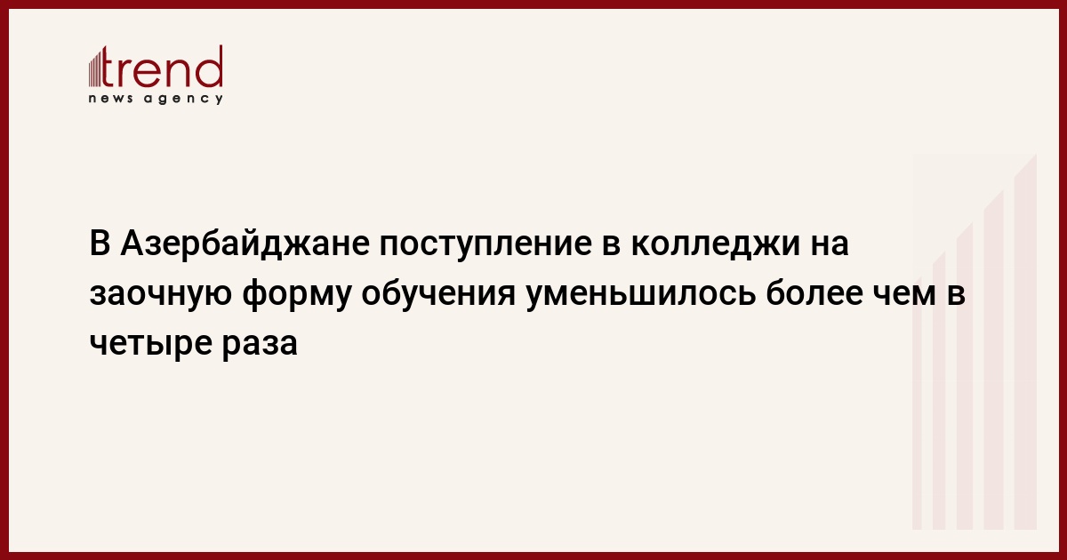 БАКУ / Trend/ - В Азербайджане на 2014-2015 учебный год плановые места для поступления в колледжи на заочную форму обучения по сравнению с прошлым годом уменьшились в 4,1 раза, министерство образования сообщило Trend в пятницу.