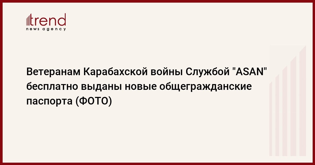 В рамках акции с помощью мобильной группы Службы "ASAN" группе ветеранов Карабахской войны были выданы новые общегражданские паспорта на бесплатной основе.